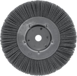 Wheel brush with abrasive bristles, industrial quality, for use on stationary machines.