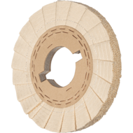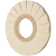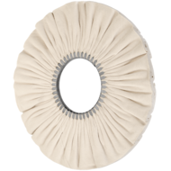 Regular folds with a sandwich of sisal web and cotton cloth, make the Osborn Pleated Sisal Cloth Buffs, an aggressive tool with good compound retention.