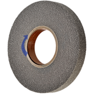 Non woven abrasive web is wound around a core and specially treated, resulting in a consistent hardness and level of abrasion over the life of the product. This convolute wheel is perfect for light deburring. An arrow indicates the direction in which the Lipprox® Wheels must be used.