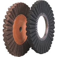 Tightly packed coated abrasive flaps arranged around a core, make an effective grinding tool prior to polishing. Round parts and tubes benefit from this product, with its long life and ability to continually reproduce the same surface.