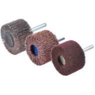 Small abrasive flap wheels on a 6 mm shank are available in non-woven, coated abrasive or a combination of both. They are suitable for use on power drills and high speed machines. These wheels reach areas that are difficult to access. They adapt well to contours and produce a smooth uniform satin finish.