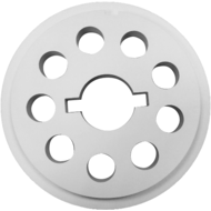 Centreplates with ventilation holes are required to reduce the inside diameter of buffs to a bore size that suits the shaft on to which they are to be mounted. Metal centreplates are re-usable.